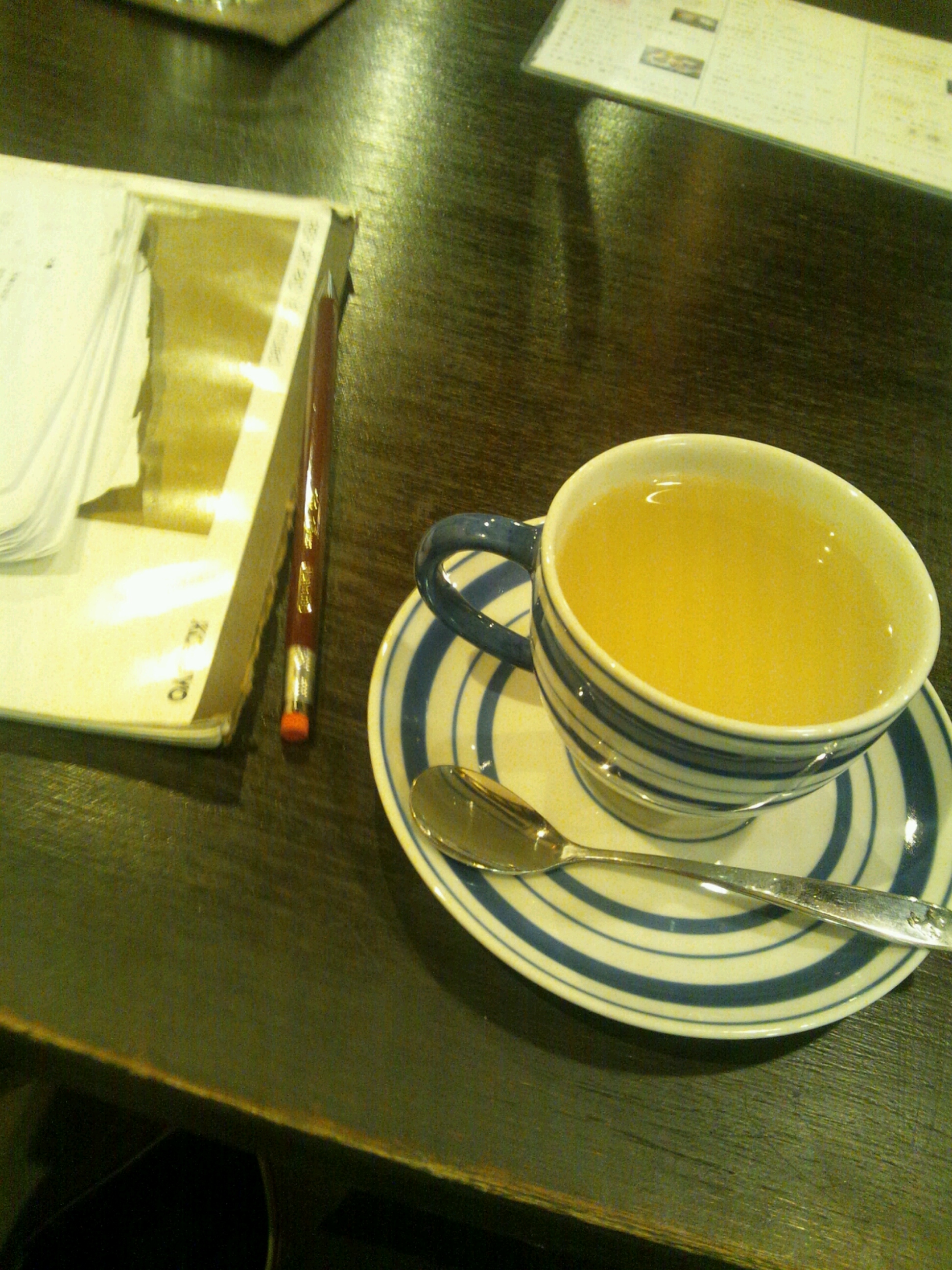 ゆるやかな音楽 時計の音 ちくたくちくたく ざわざわざわ 商店街を行く人たちが窓から見える 頼んだショウガとハチミツの飲み物がたまらなくおいしい。 ああ。幸せだ。 まもなくスタッフさんの前で通し稽古するだなんて、そんな、そんな、はっはっは。 緊張するぜ…笑 本番は15日から19日まで中野MOMOです! 是非いらしてください! 楽しませるぜい!! ちょっと暗めの話だけど(笑) 小説家が書いた虚構が現実となっていく…この世は不確かな物語。 詳細はっ★→http://ameblo.jp/tricktops/entry-11919147108.html