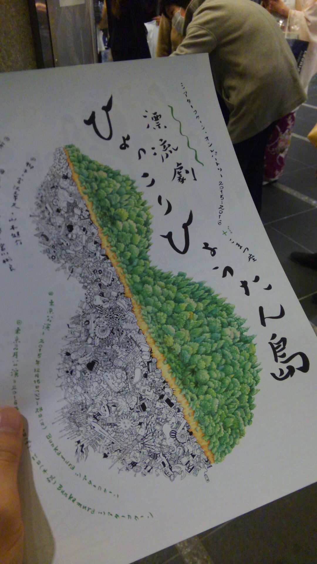 ※ネタバレにはお気をつけください ①キ上の空論『ああ、色は思案の外』A ちょこちょこと感じるものはあったのですが、なんとなく浅いと思いました。人物間に隙間が多いというか、スナップ写真を見てるような。 ②桟敷童子『泳ぐ機関車』 3年前に観た時よりも、もっと好きになった気がします。この時の役がそのままその人のイメージになっている位、濃い物語。歩く。 ③SAY企画『雨と雪と町と私と、』 題材は好きだったのですが、客席とのコミュニケーションが感じとれず、興味を持てなかったのが苦しかったです。 ④エビス駅前バープロデュース『夜明けの街に清き一票』 雰囲気の良い、夜明けの匂いのする芝居でした。 ⑤BASEプロデュース『聖夜に無職なサンタたち』 素敵なおじさま方のゆるくて愉快なおはなし。素敵な催しでした。 ⑥ぬいぐるみハンター『池亀三太ソロコント WORLD TOUR』 愛されてる人なんだろうなと思いました。 ⑦ (企)劇団思い出づくり+ちーむはちぽち『進撃の宇宙人~episode7 First Love~』 笑った(笑) ⑧肯定座『MAN IN WOMAN』 30オーバーにはくるものがありました(笑)。メッセージ性のあるほろりとする会話劇。 ⑨シアターコクーン・オンレパートリー『ひょっこりひょうたん島』 飛び込みで観に行って本当によかった。よくわからないシーンも何もかも全部「冒険」という言葉に帰着し。ラストの台詞でぐわっと落ちる。最高でした。 【振り返り】 いいものを見ると、方法論を学べる! 2015年、計109本観劇。 ありがとうございました。 来年もたくさん出会おう。 了。 PR